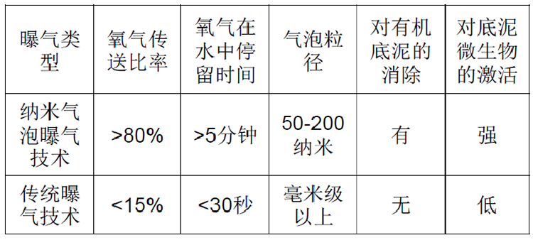 納米氣泡技術與傳統曝氣技術的比較 Comparison between nanobubbles patent technology and the traditional aeration technology |